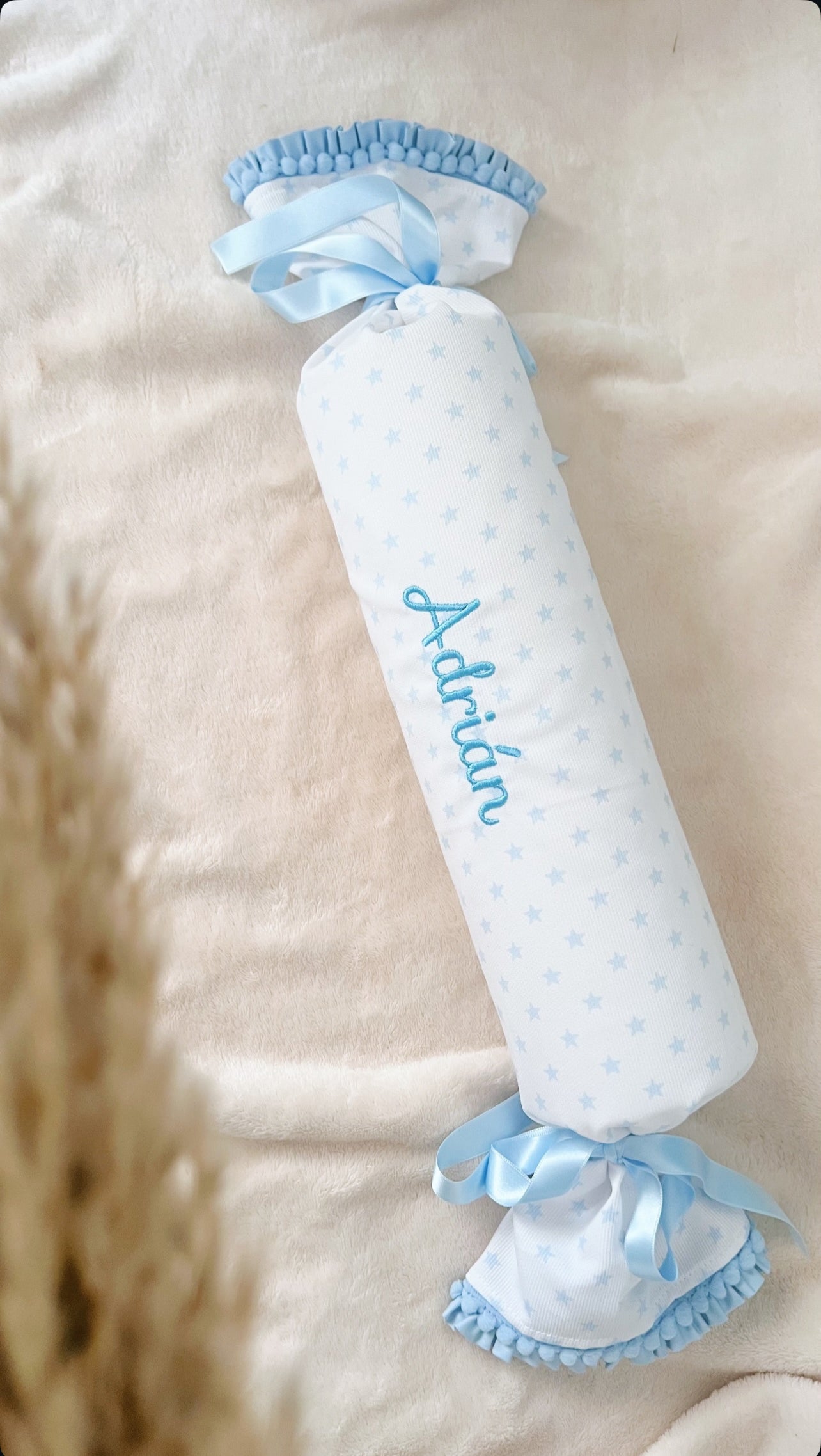 Personalizado con el nombre bordado se convierte en una pieza única y especial. Fabricado en piqué 100% algodón con relleno de espuma firme, garantiza comodidad y durabilidad. Desenfundable y lavable a máquina para una higiene sin complicaciones.