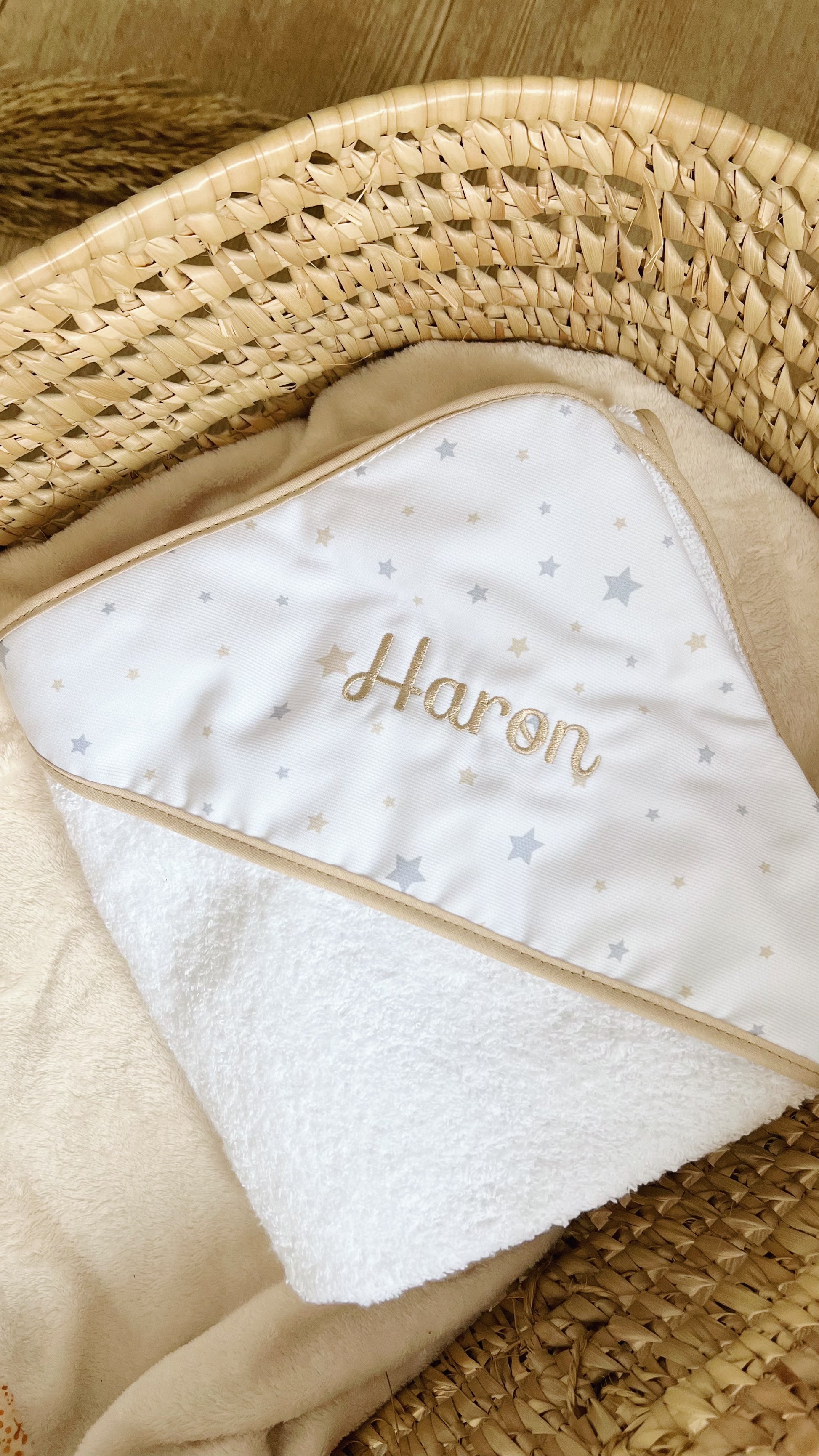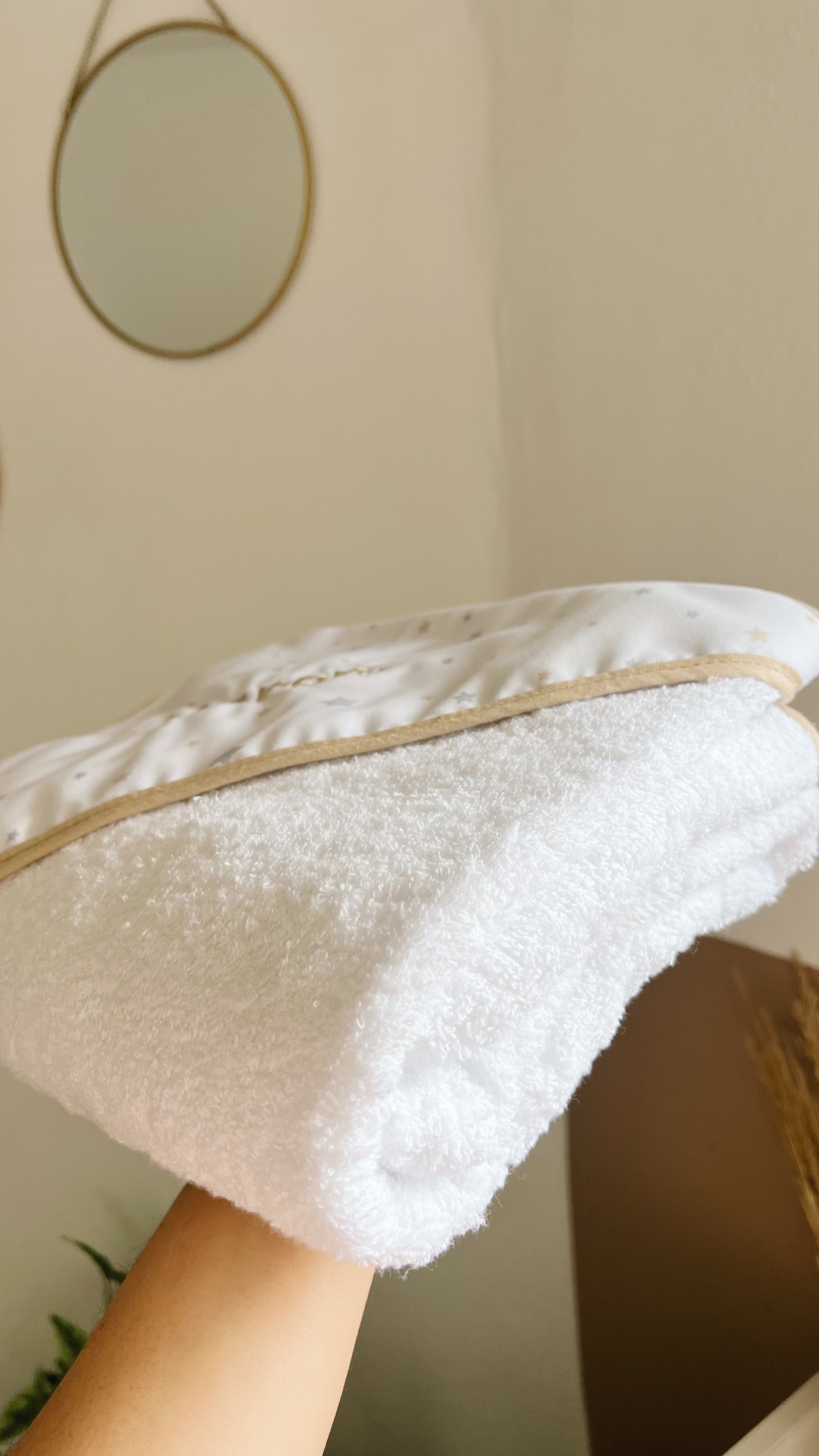 Capa de baño con el nombre bordado del bebé, ideal desde el nacimiento hasta los 4 años aproximadamente por su gran tamaño. Un básico imprescindible para el día de día del bebé. Suavidad y comodidad al estar hecha por: